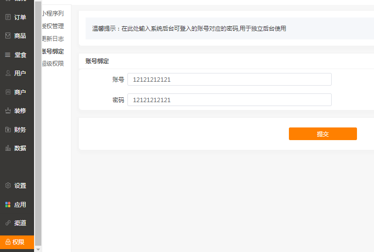 说明:商户后台独立登录不再需要绑定微擎用户,直接绑定操作员账号密码就可以了