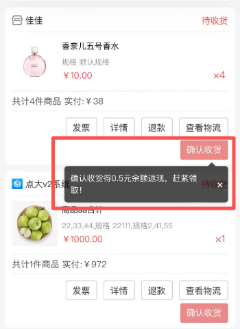 3. 余额返现:会员确认收货后,发放多少钱到余额;
