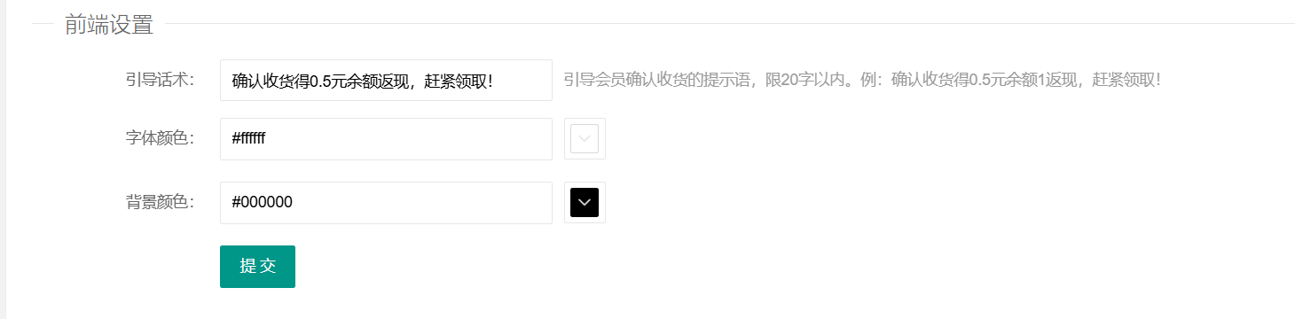 #### 用于开启/关闭确认收货奖励功能,设置功能内容。