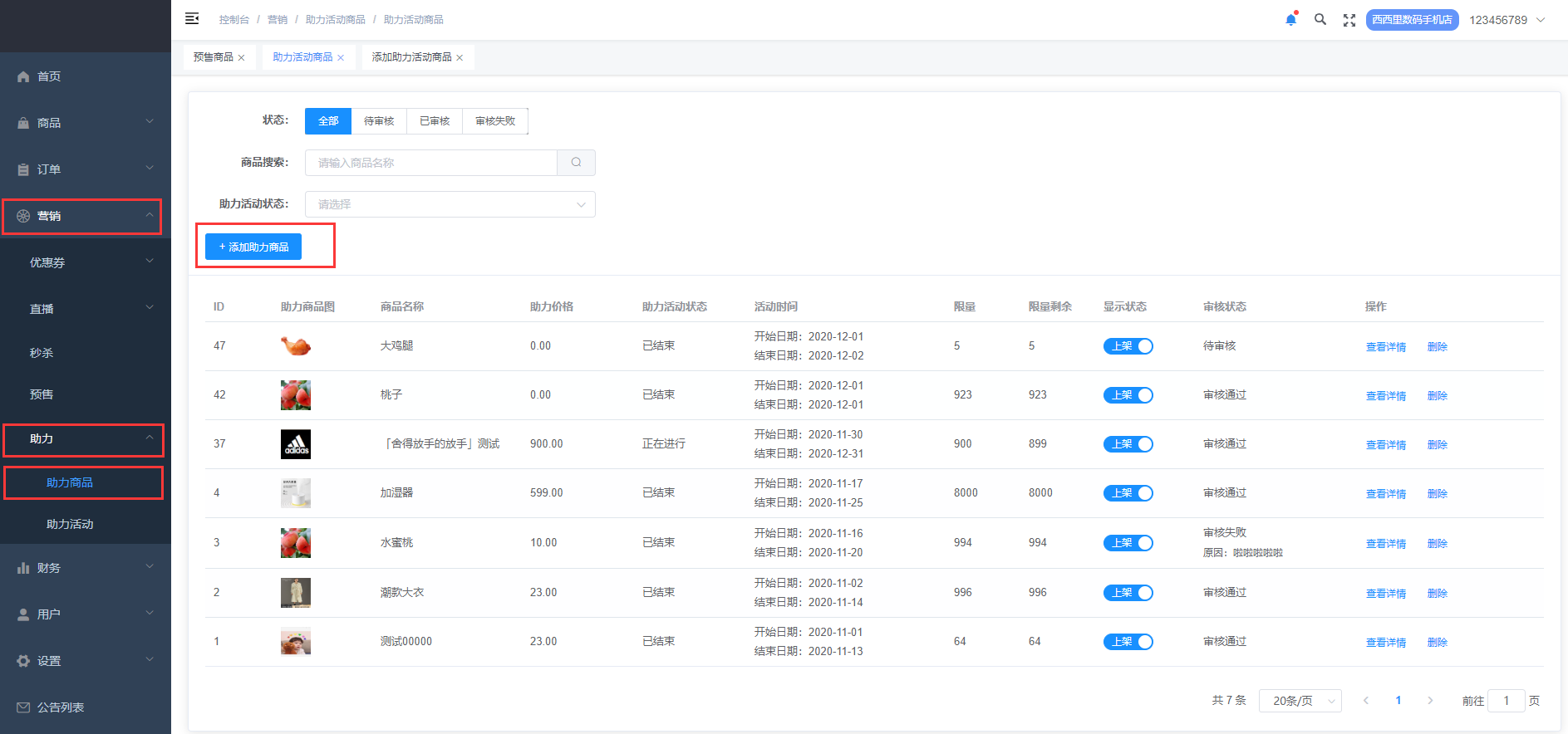 4. 可设置相同ID的商品每个用户助力次数,至少为1;