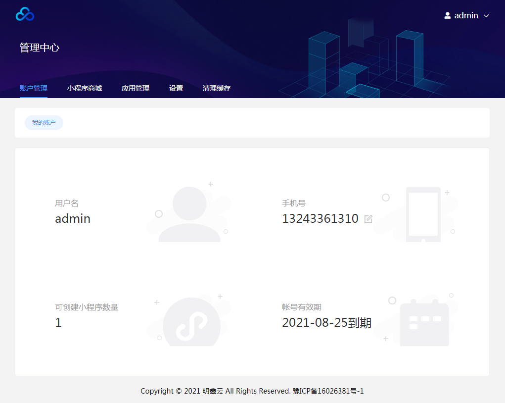 #### 第四步:你能登陆系统后,能看到下图说明平台已经开能,可以正常使用。