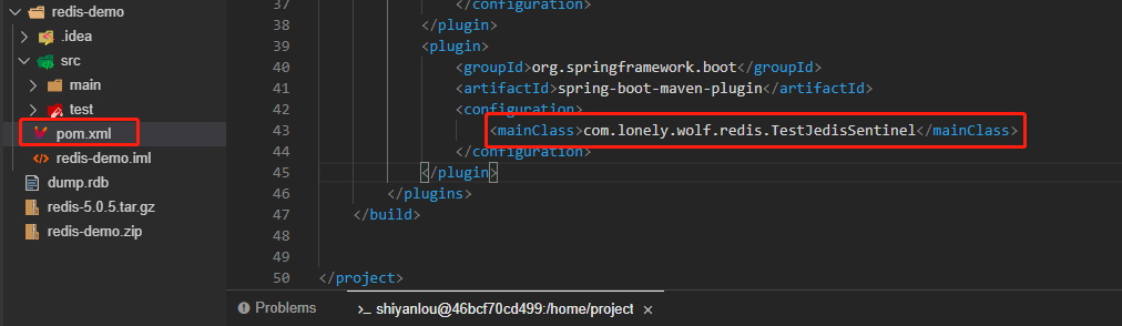 单独的`master-slave`集群使用方式和单台`Redis`的使用方式没有区别,所以我们在实验十一中并没有去讲解如何使用。但是`Sentinel`的使用和单台`Redis`的使用上有点区别,接下来大家跟着我一起动手写一个简单的`Sentinel`使用`demo`(后续还有两个实验也会有`demo`的讲解,为了方便使用第三方`jar`包,在这里我预先搭建好了一个简单的`Spring Boot`项目的骨架,大家就不需要再单独去创建了):