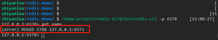 可以看到,在这里提示我们需要去`6371`服务操作,这就说明`name`这个`key`是由`6371`负责的,而我们在代码中只连接了`6370`这一个服务,是`Jedis`客户端实现了自动重连的功能.