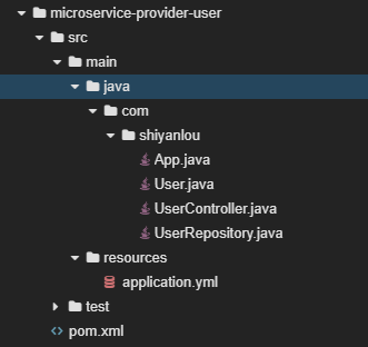 * 在`com.shiyanlou`下创建`UserController.java`,提供 RESTful 接口: