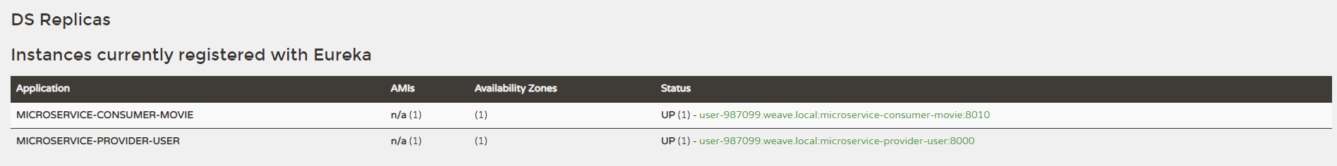 即表示两个微服务已经成功注册到了服务发现组件 Eureka Server 上。
