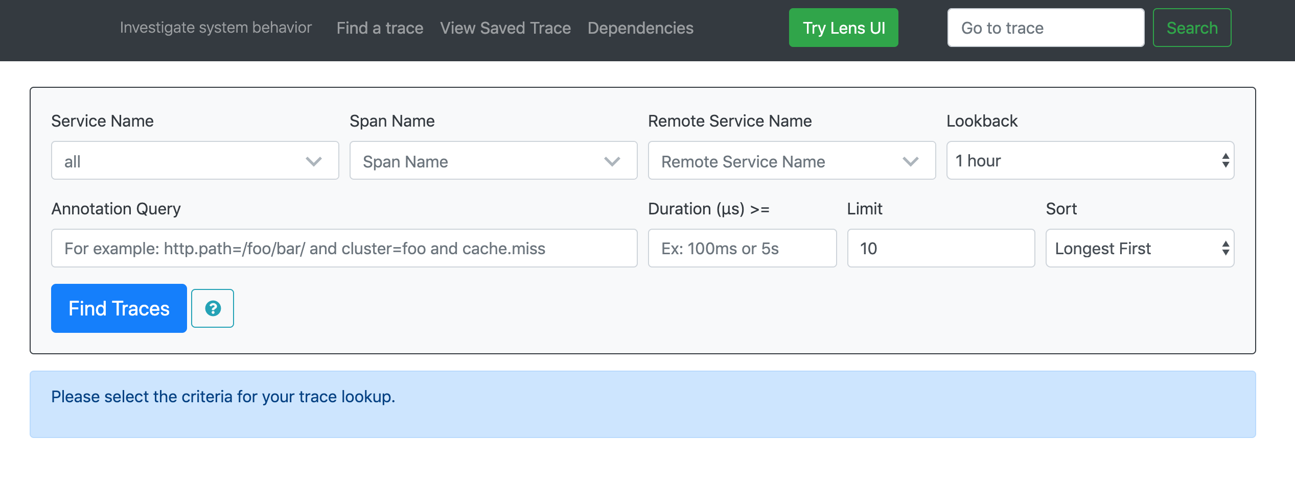 * 访问`http://localhost:9411`,即可看到 Zipkin Server 的首页。