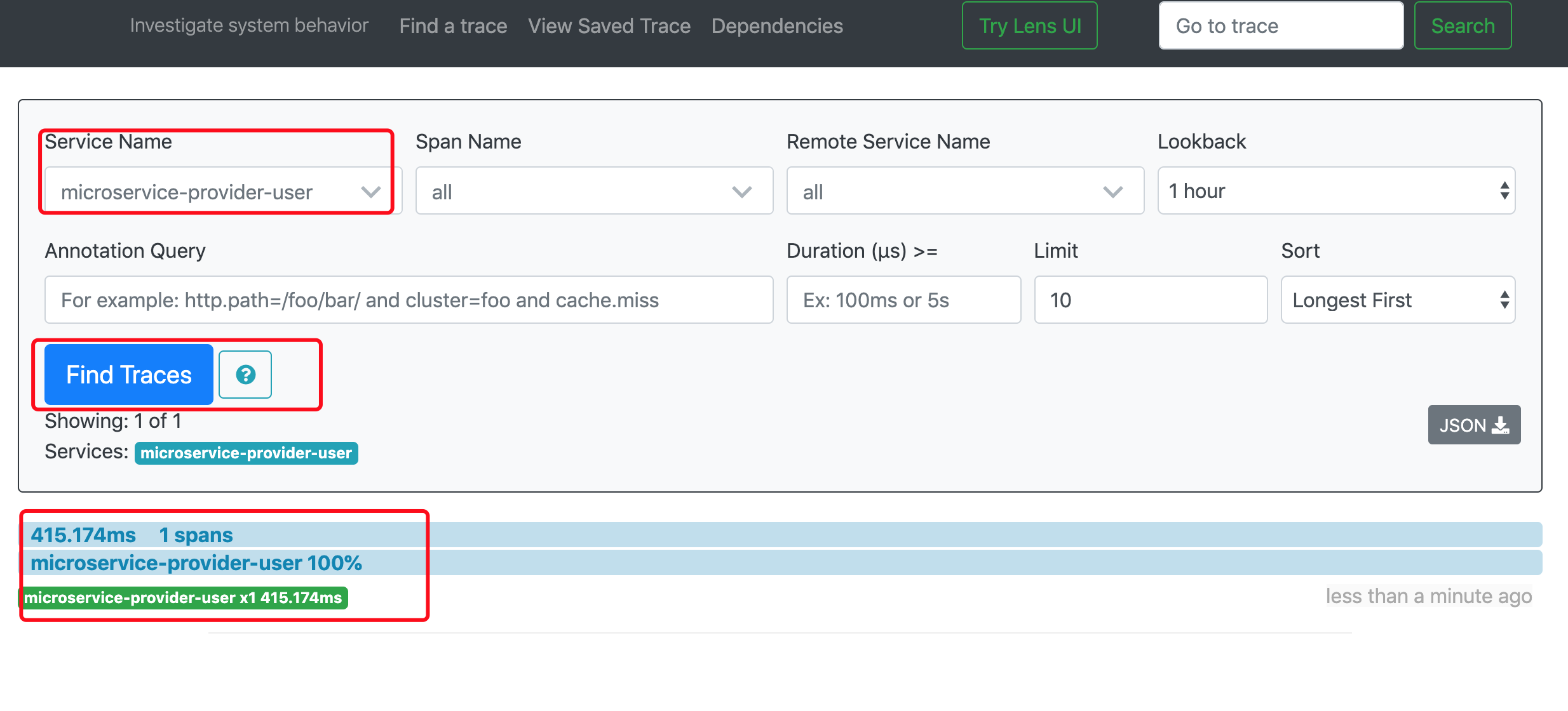 启动微服务,访问`http://localhost:8000/users/2`,然后浏览器访问`http://localhost:9411`,可看到类似如下界面: