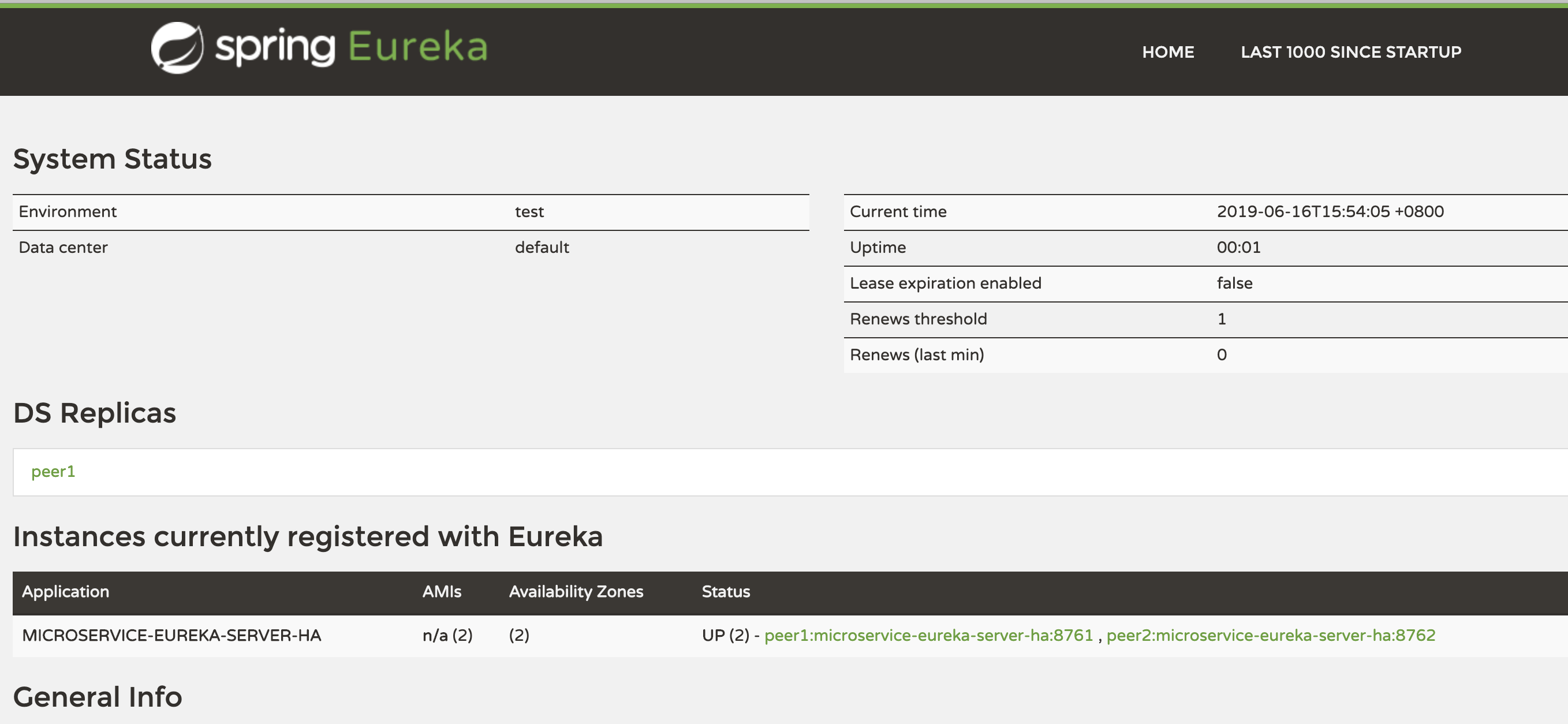 带两个实例启动完毕后,用浏览器访问:`http://localhost:8761/`和`http://localhost:8762/`,发现两个页面信息一致。