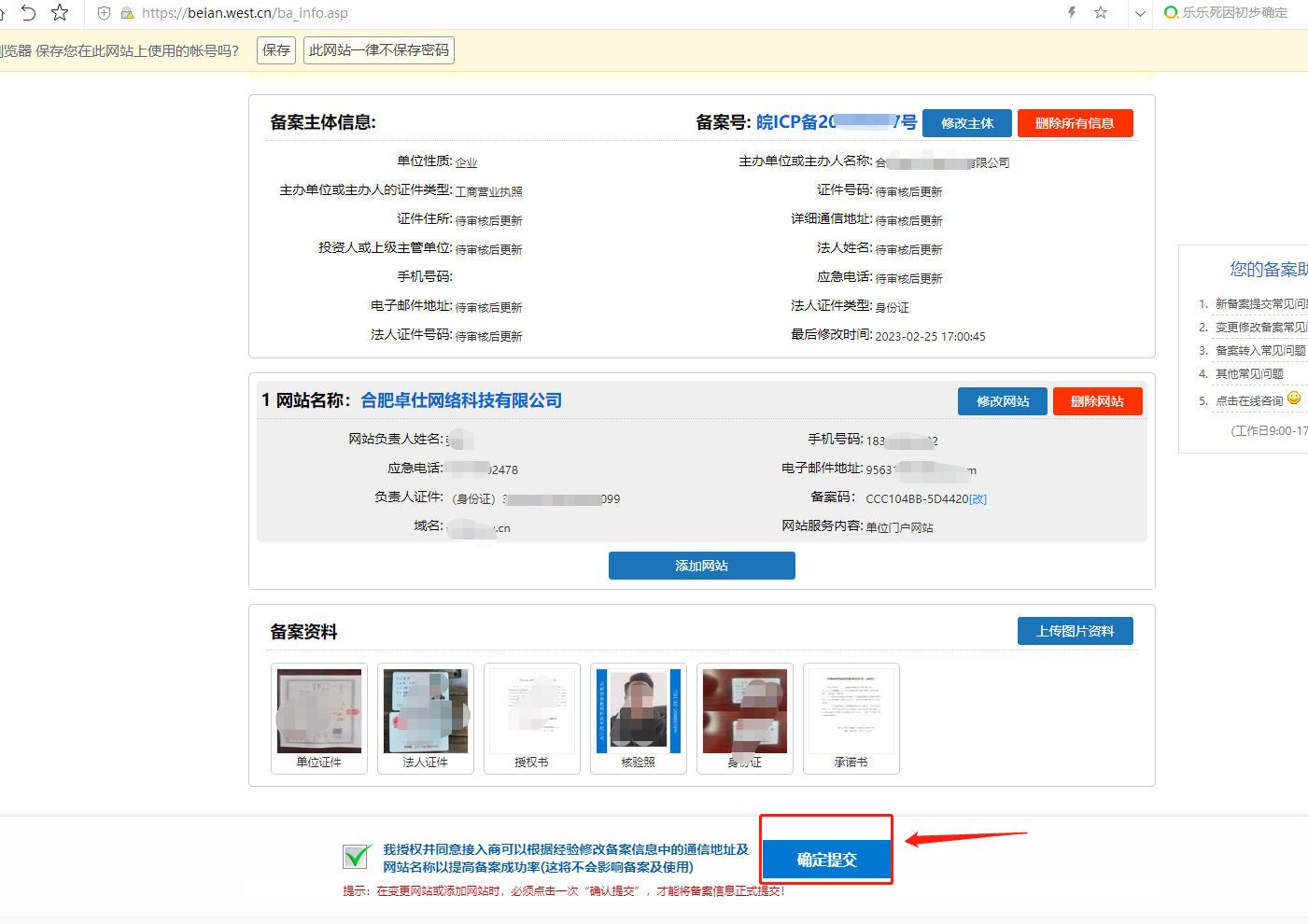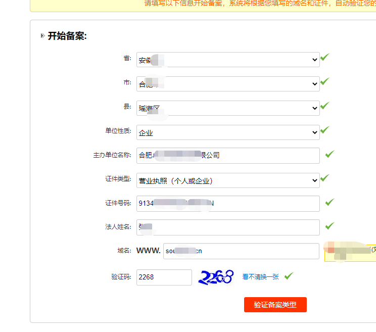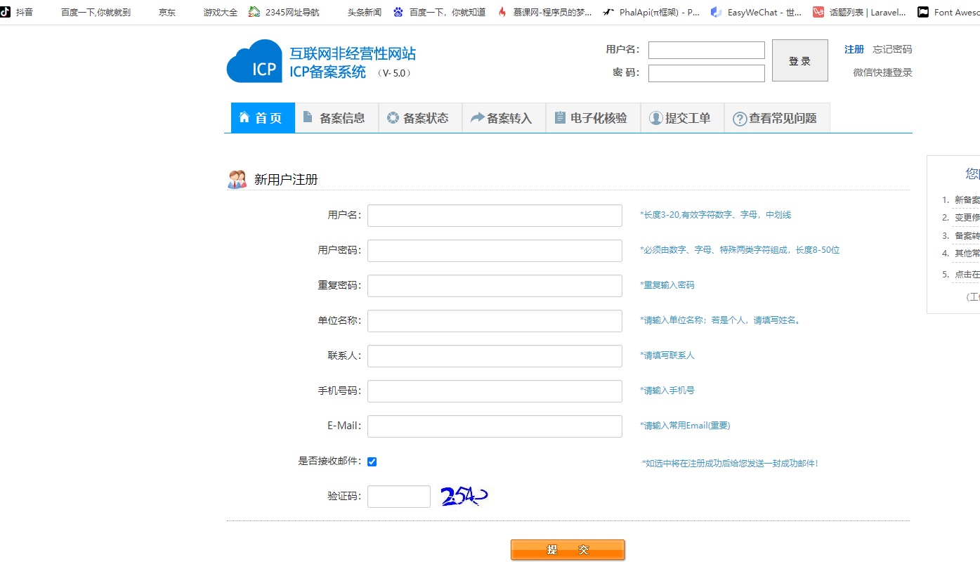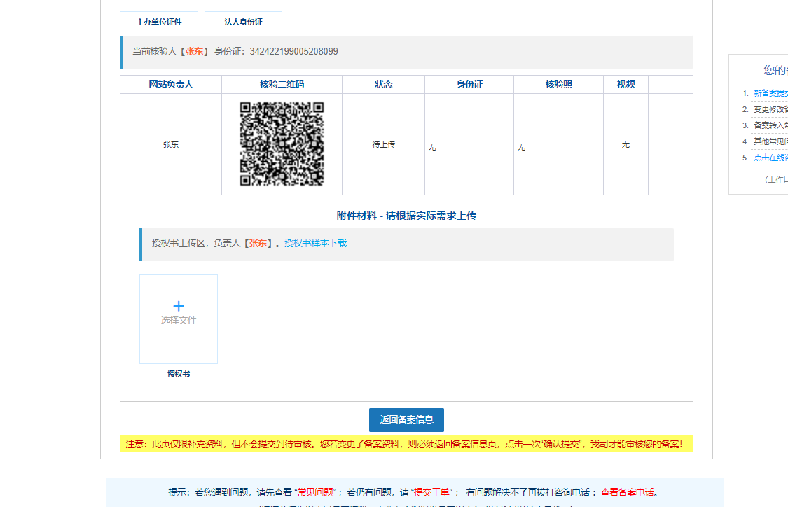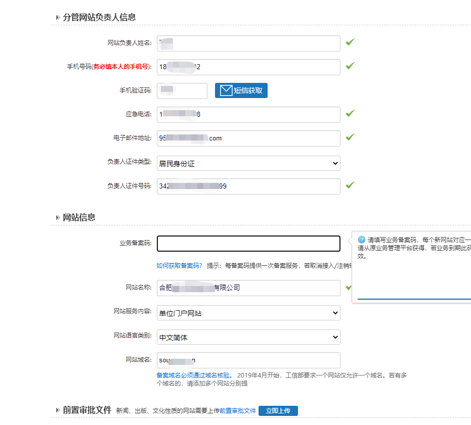 4、常用手机号+备用手机号和邮箱**(常用手机号接收验证码和网站备案接入核验)