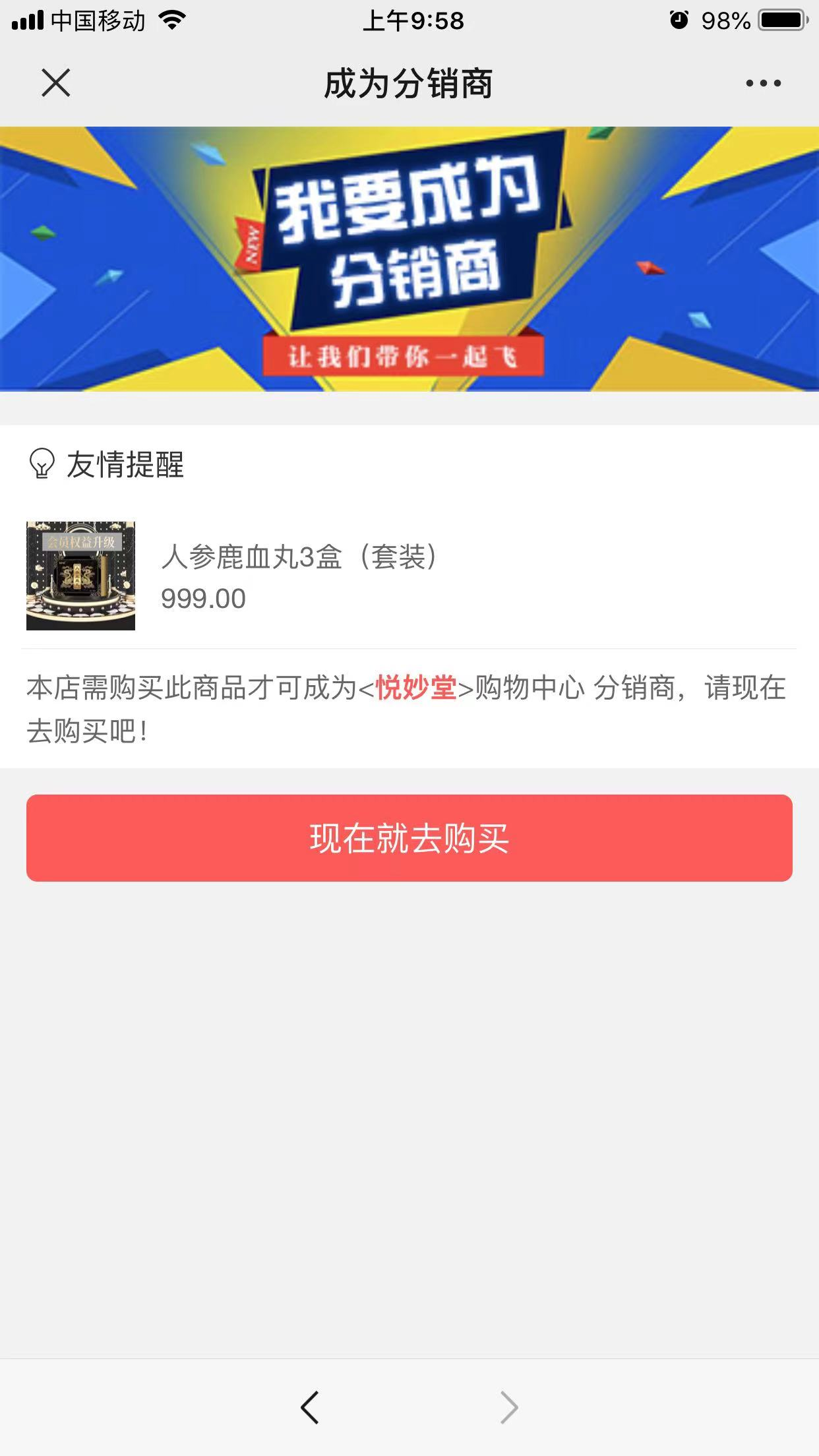**问题3:**文字修改成:平台从业人员,购买商品金额满999元及以上 可成为(悦妙堂)购物中心 VIP产品服务商