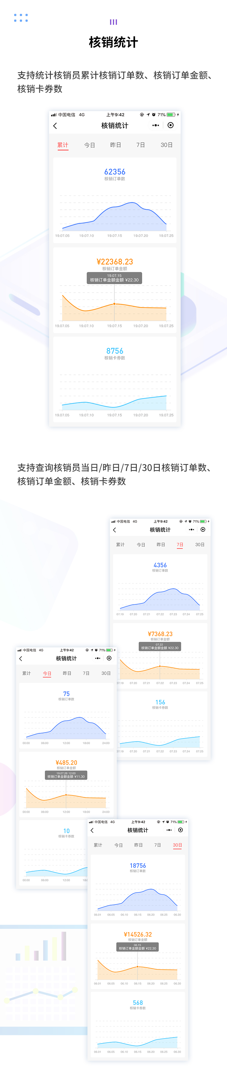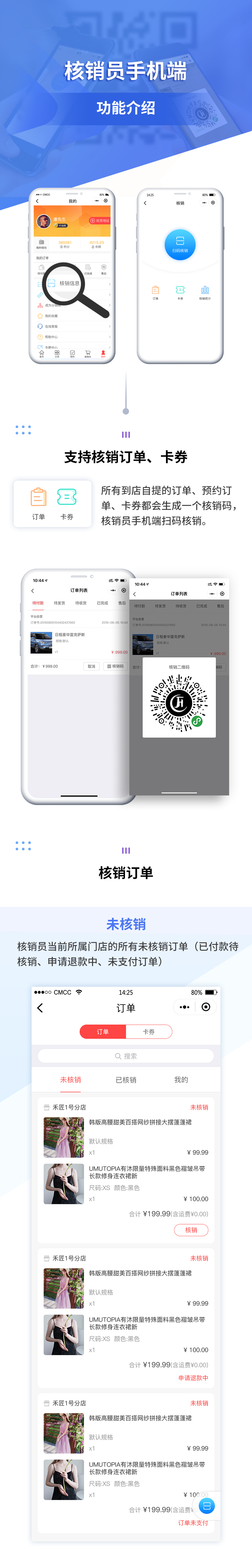 用户在小程序商城中的到店自提订单、预约订单或卡券,都会有一个系统自动生成的提货凭证(核销码),用户到线下门店出示凭证,商家扫码核销订单/卡券。