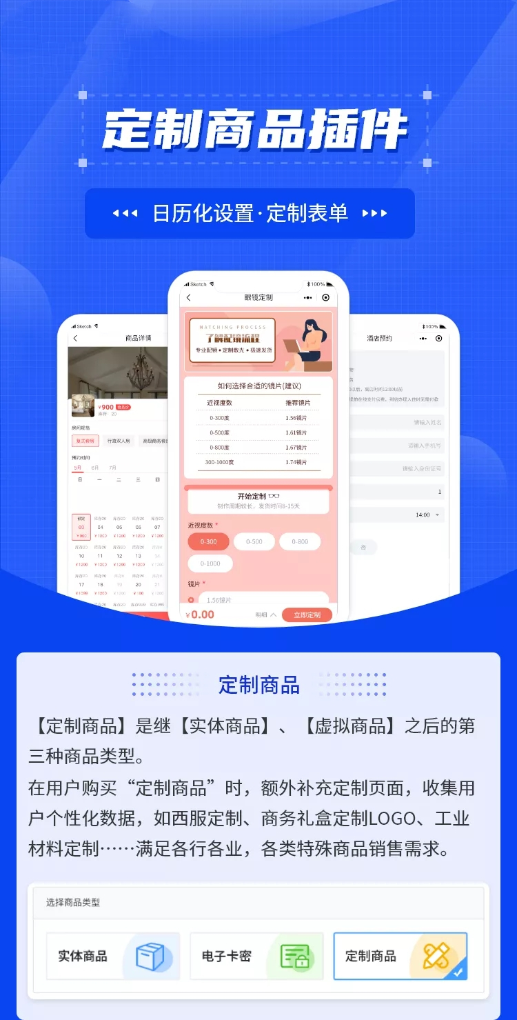 【定制商品】是继【实体商品】、【虚拟商品】后的第三种商品类型。