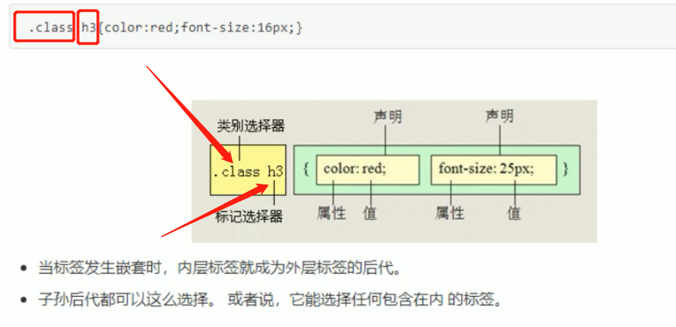 # (**重点**) 后代选择器 (**同一个祖宗**,所有**相同**都**可以使用**)
