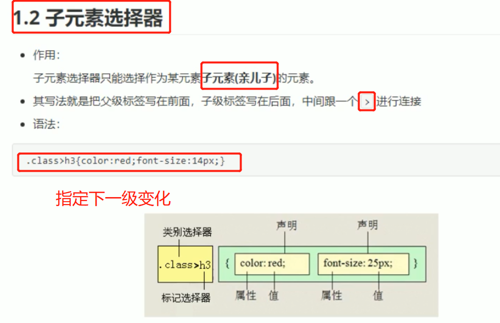 # 子元素选择器(**指定**某个div**下一级变化**)