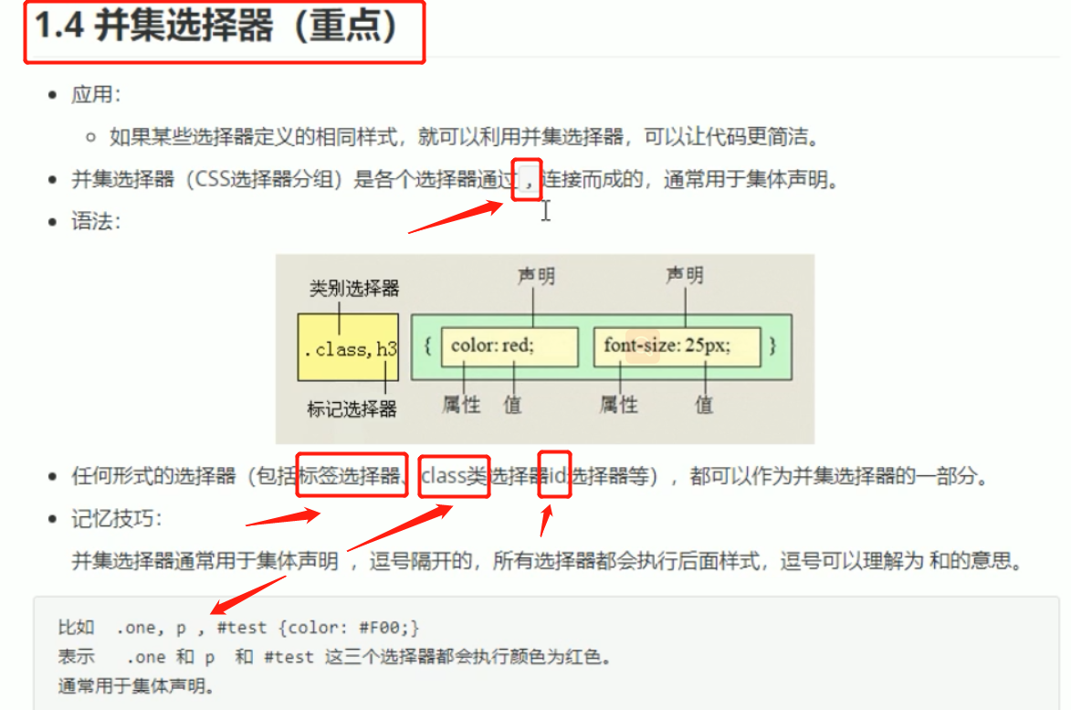 # (**重点**)并集选择器(**多个使用**用**逗号**隔开)