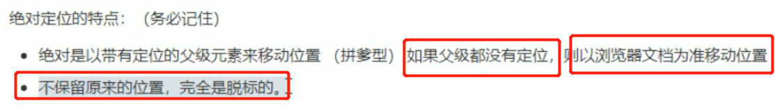 如果父级**没有定位**绝对定位子盒子以**我们文档为准浏览器移动位置**