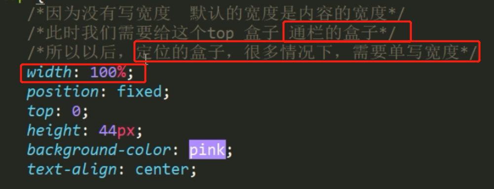 所以以后,定位的盒子,如果需要通栏那我们宽度就给100%