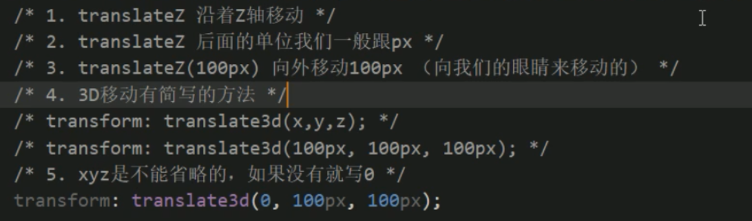 ●**translform:translateZ(100px) :仅仅是在Z轴上移动(注意: translateZ一般用px单位)**