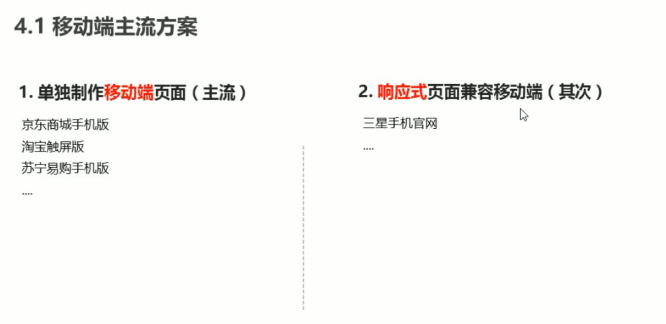 现在市场常见的移动端开发有单独制作移动端页面和响应式页面两种方案