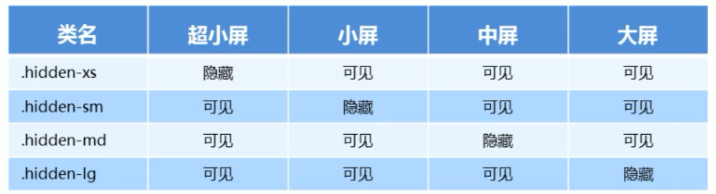 **visible-xs visible- sm visible-md visible-lg是显示某个页面内容**