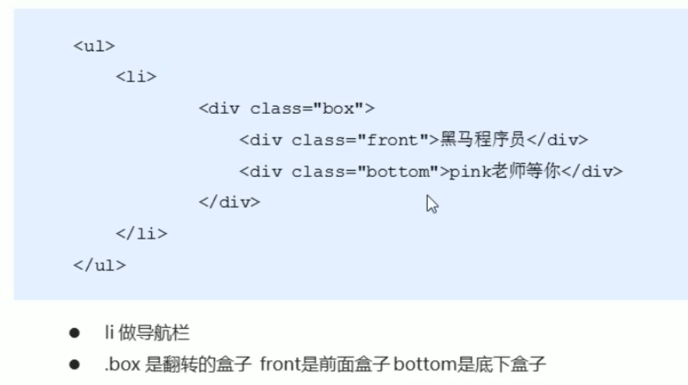 # 3D动画 导航栏 ## 需求: ![](https://img.kancloud.cn/9c/fd/9cfd6770d5b9ec9095cbba079fa6a3ce_1085x238.png) | 正面![](https://img.kancloud.cn/01/cf/01cf5299658a66ddb214eec1c91648ef_900x639.png) | 侧面![](https://img.kancloud.cn/5a/bf/5abf341569815a32bc71f6e79364afc9_917x789.png) | | --- | --- | 搭建 html结构 ![](https://img.kancloud.cn/fc/dd/fcdd8ecbd4ae984ca9dcc6034ad0edfa_979x548.png) css结构 | 1、![](https://img.kancloud.cn/0c/0e/0c0e288b1af47966a1c7211fdcd449f0_342x318.png)![](https://img.kancloud.cn/b4/57/b45790cecfe00bebe437312aaeaea8ad_406x178.png)![](https://img.kancloud.cn/c1/f3/c1f3a631afd45462ab22f27ca95b6527_614x269.png) | 大盒子![](https://img.kancloud.cn/53/b8/53b82d30b7bdff061b9ca101d0648b72_697x443.png)小盒子![](https://img.kancloud.cn/da/63/da6349f1046d3dcd12806612f8d115f0_524x339.png)![](https://img.kancloud.cn/97/64/976460a3a69ed97df356be7cf69f910a_918x469.png)![](https://img.kancloud.cn/50/e2/50e26248f402e4804c1d86641caf1dd6_956x575.png) | | --- | --- | 上一篇:[3D动画-转换-两面翻滚盒子](https://www.kancloud.cn/zheng1234/webshiyan2/2122022)下一篇:[3D 动画-旋转木马](https://www.kancloud.cn/zheng1234/webshiyan2/2122024)