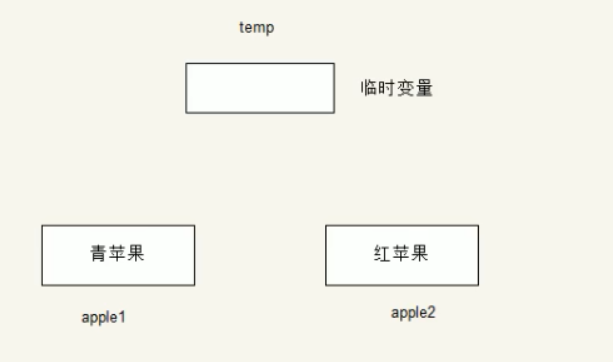 交换两个变量的值(实现思路:使用一个临时变量用来做中间存储)