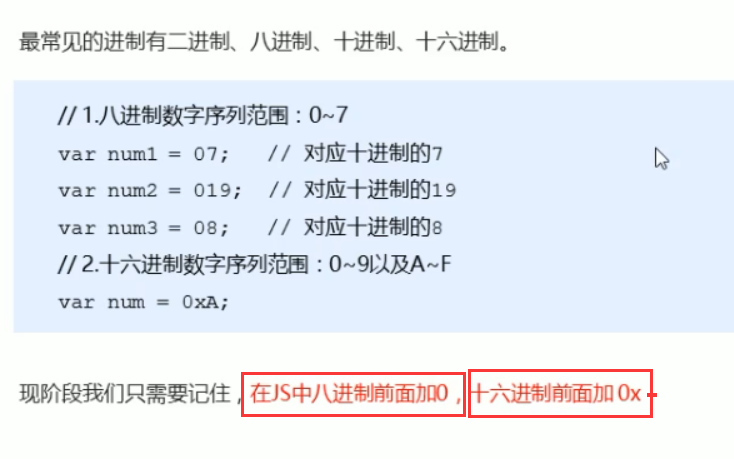 ## 进制 (**8进制**前面加**0**; **十六进制**前面加**0x**)