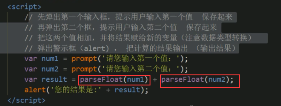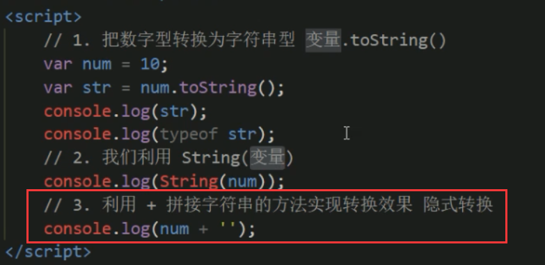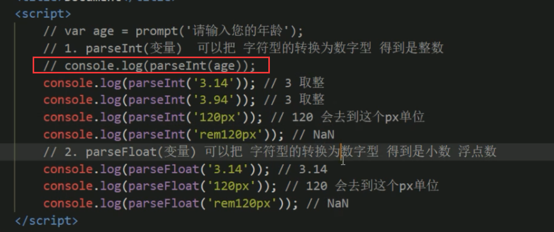 | Number()强制转换函数|将string类型转换为数值型 |Number('12') |