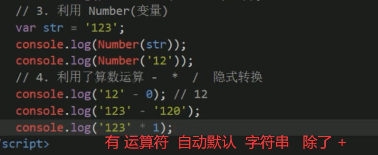 | js隐式转换(- * / )| 利用算术运算隐式转换为数值型|'12'- 0 |