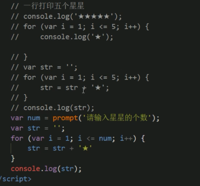 ### 一行打印5颗星星 (追加字符串 )