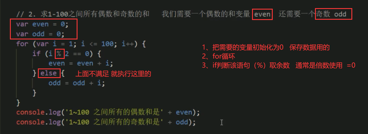 ## for循环 (1到100 的奇数偶数相加的值)