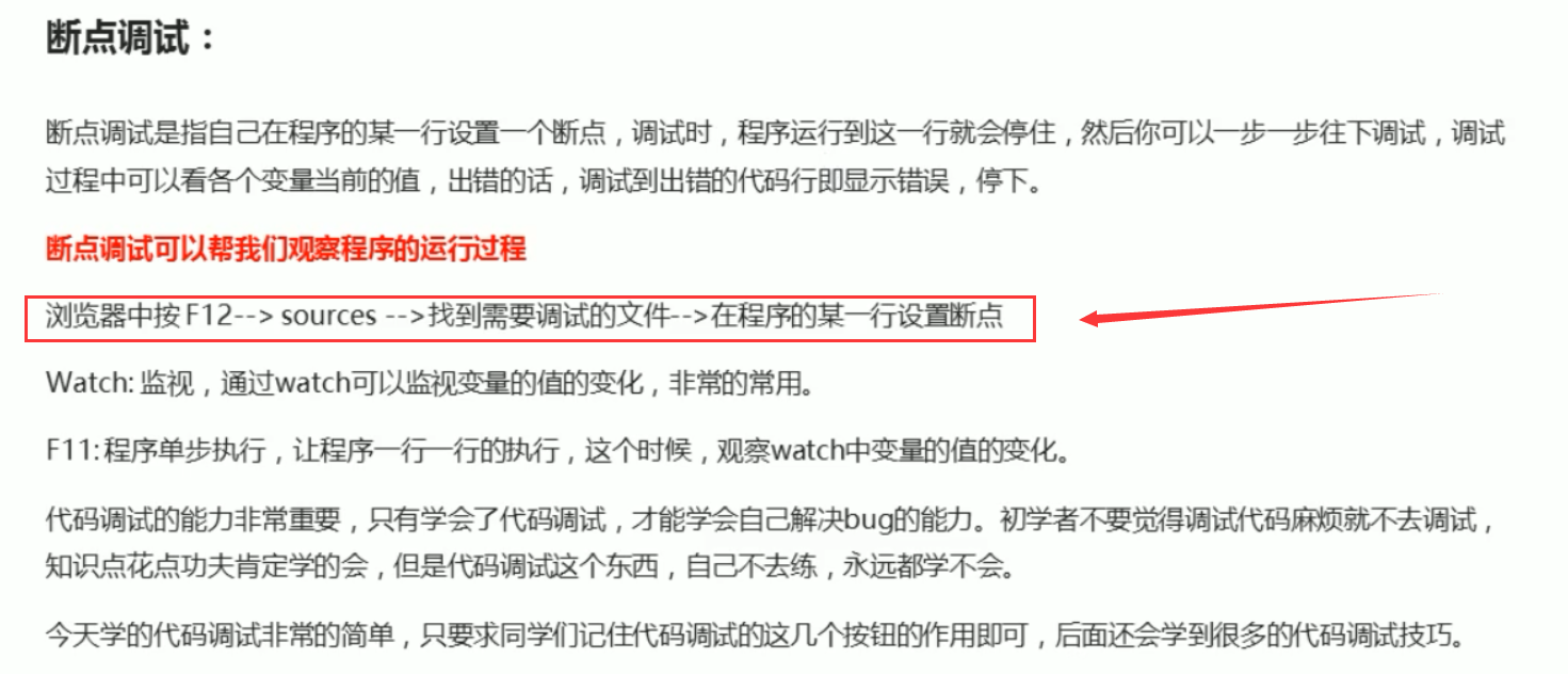 sources>找代码>行号点一下>刷新>f11 (看执行情况) Watch>点加号>输入变量 i