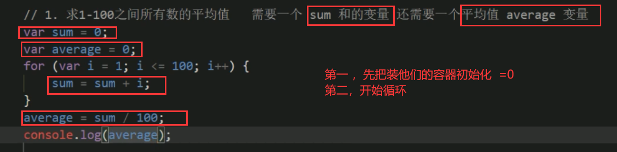 ## for循环 (1到100 平均值)(% 余数取倍数值)