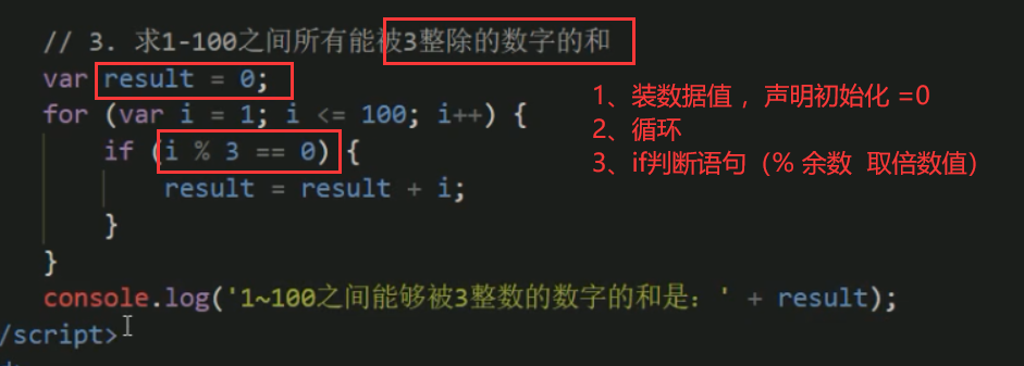 ## for循环 (1到100 3的倍数值) (% 余数取倍数值)