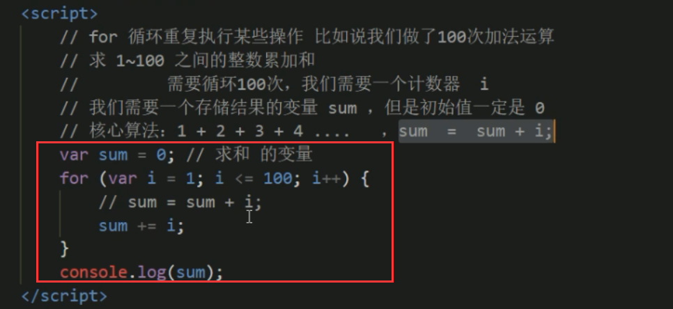 ## for循环 (1加到100)