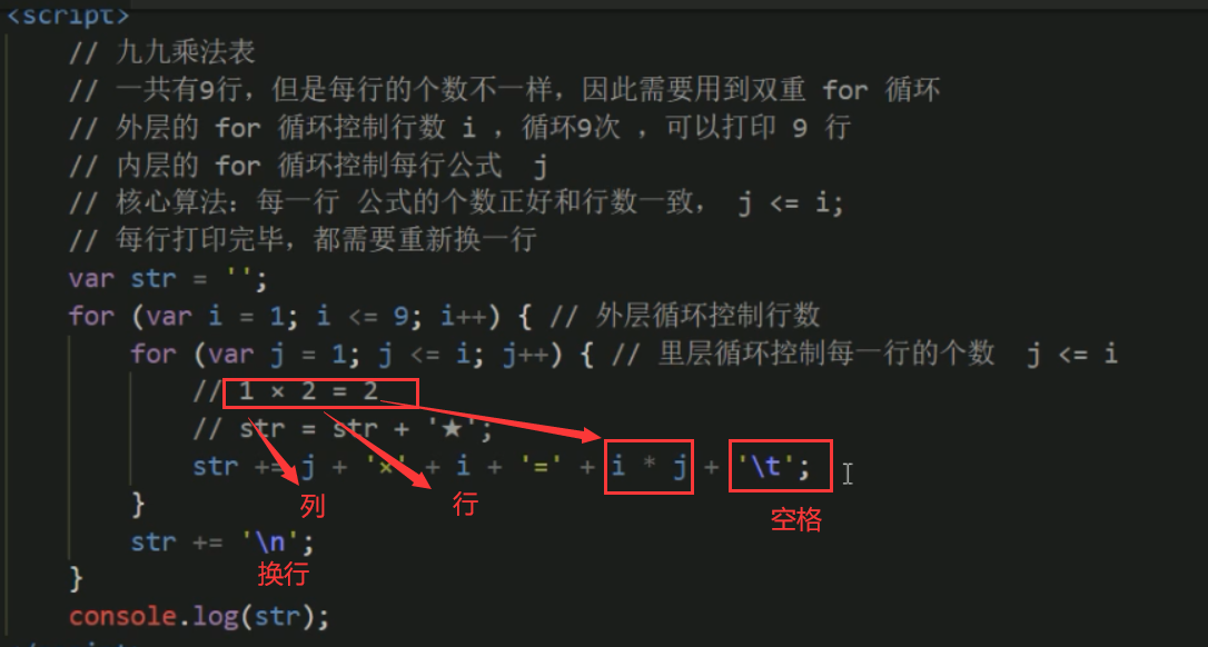 for (外层的初始化变量;外层的条件表达式;外层的操作表达式) {
