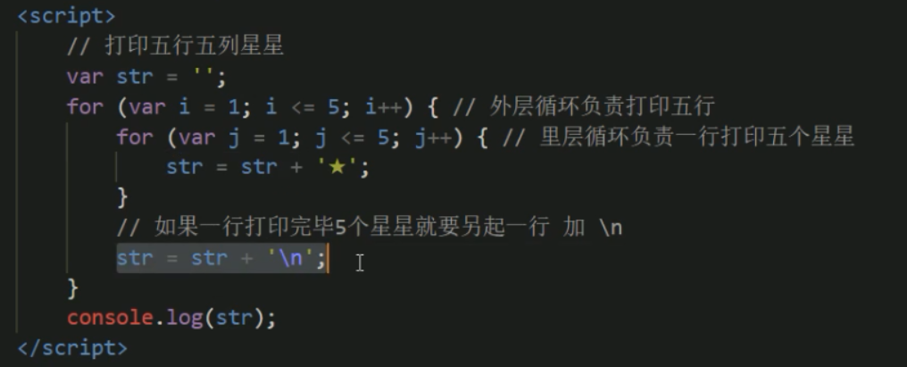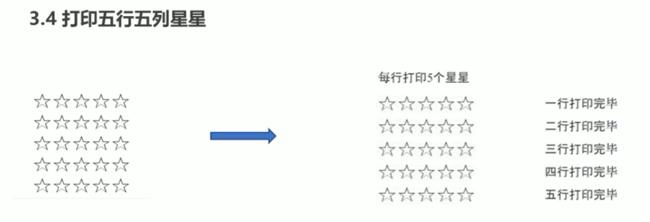 很多情况下,单层for循环并不能满足我们的需求,比如我们要打印-个5行5列的图形、打印-一个倒直角三角形等,此时就可以通过循环嵌套来实现。
