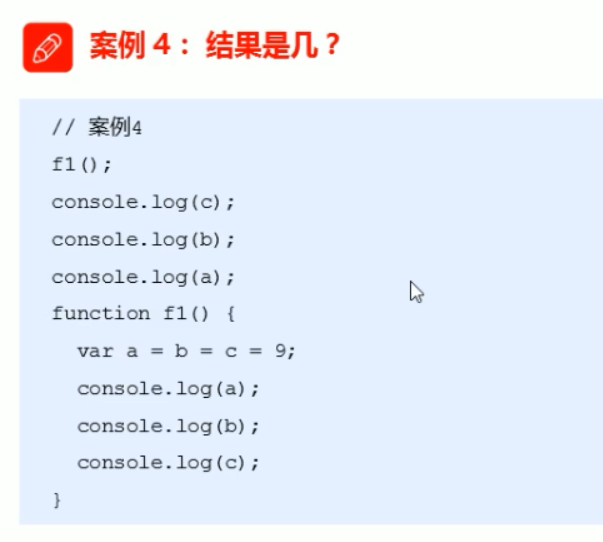 # 域解析案例4 (面试题) (**var 函数 提升也只能在同一个域里 {}**)
