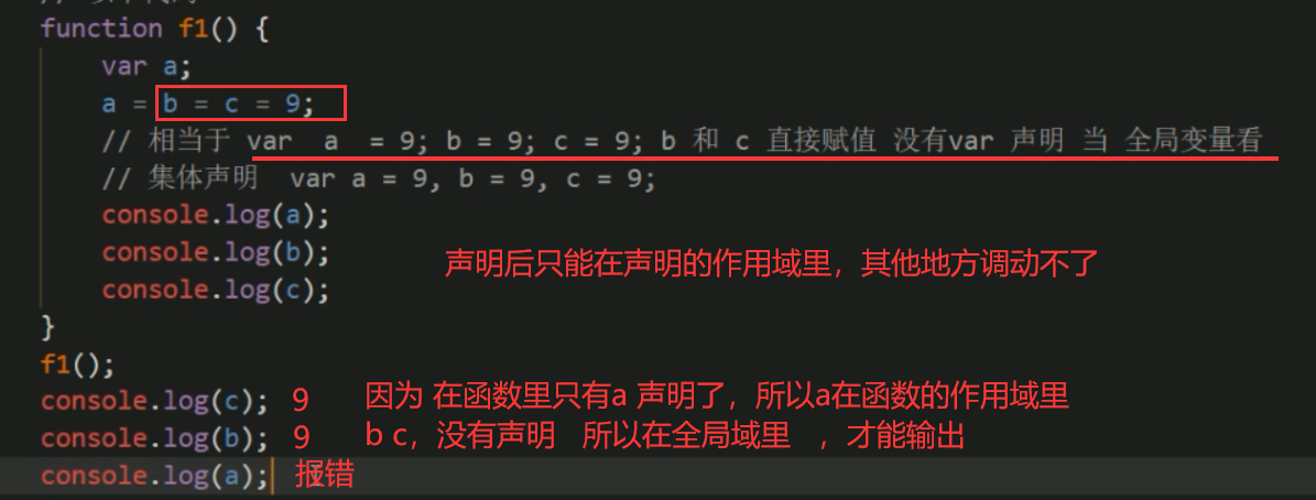 # 域解析案例1 (**var 函数 提升也只能在同一个域里 {}**)