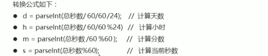 ●d = parseInt(总秒数/ 60/60/24); // 计算天数