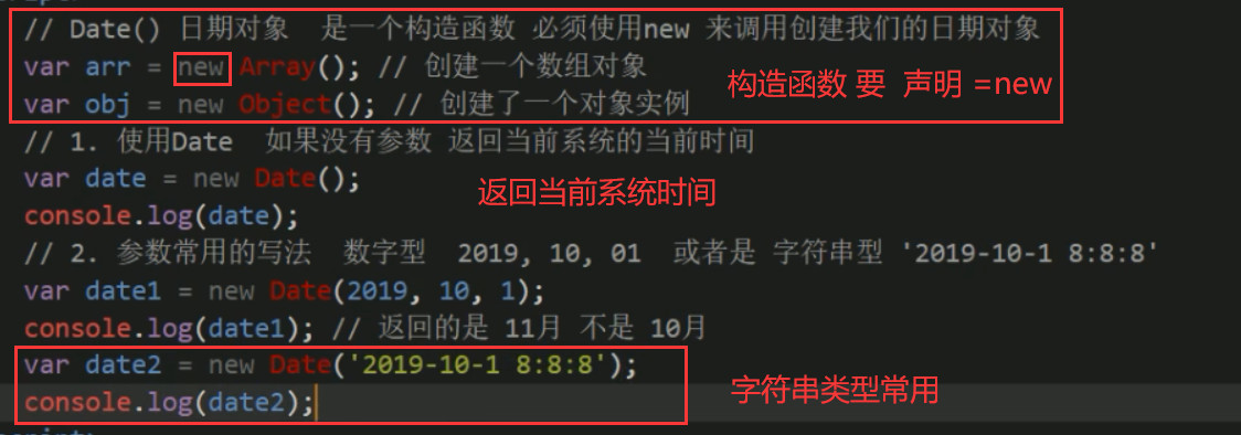 ●Date 对象和Math对象不一样,他是一个构造函数 ,所以我们需要实例化后才能使用