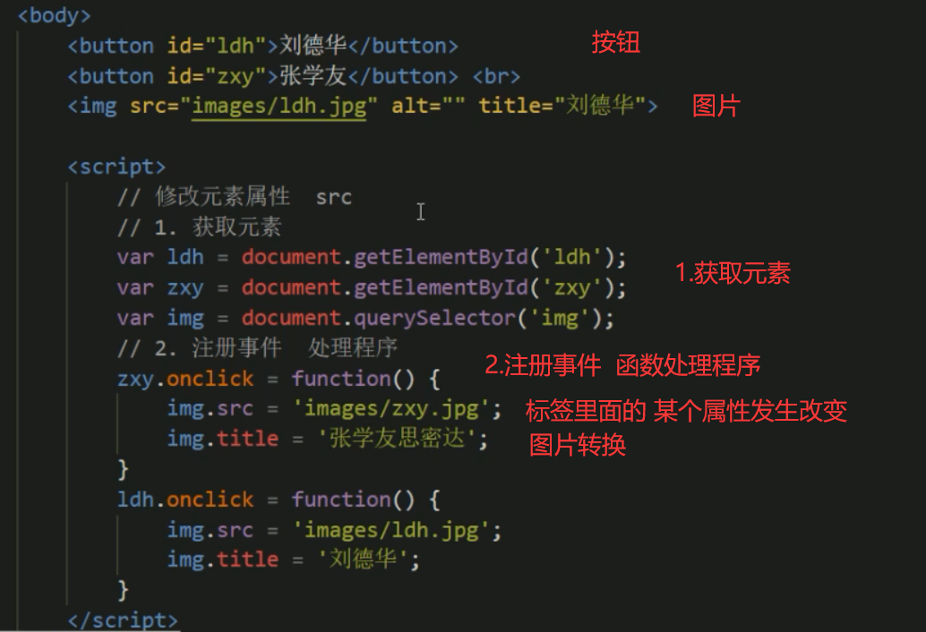 # 4.1改变元素内容 (修改页面内容)**element.innerHTML**