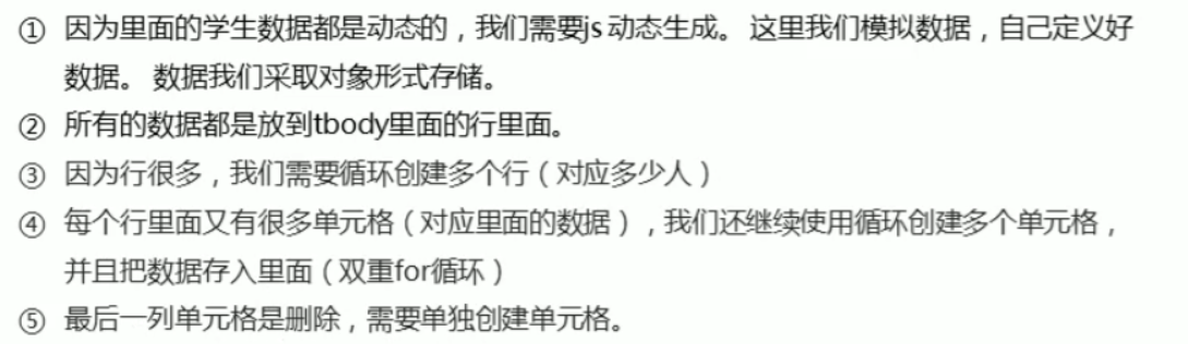 // 2.往tbody 里面创建行: