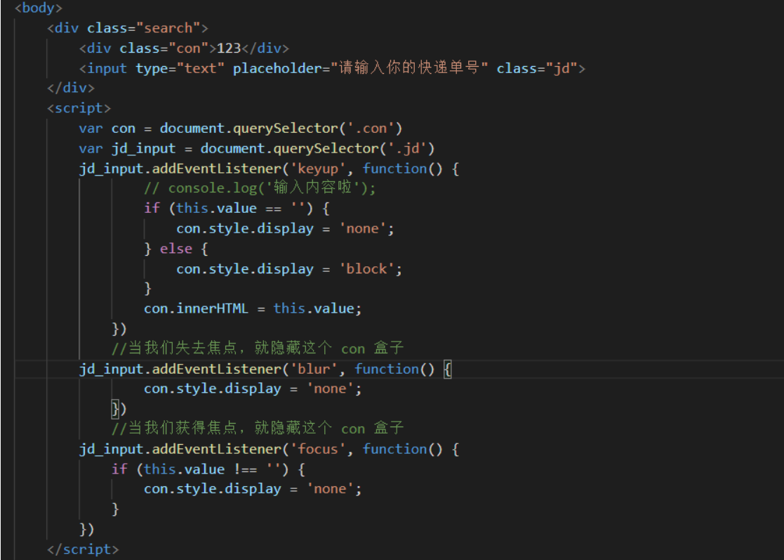 //同时把快递单号里面的值(value)获取过来赋值给con盒子(innerText)做为内容