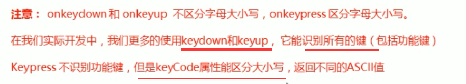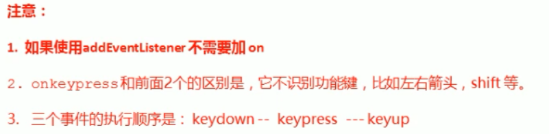 **④注意: keydown和keypress在文本框里面的特点:他们两个事件触发的时候,文字还