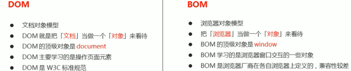 BOM缺乏标准,**JavaScript**语法的**标准化组织是ECMA**,**DOM**的**标准化组织是W3C**, BOM最初是**Netscape浏览器标准的一部分**。
