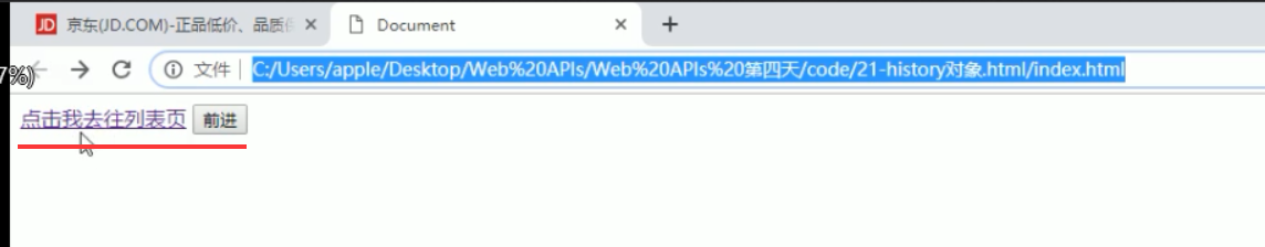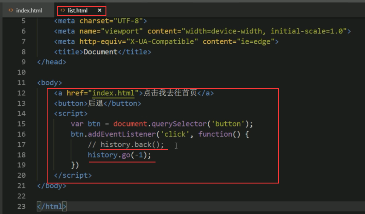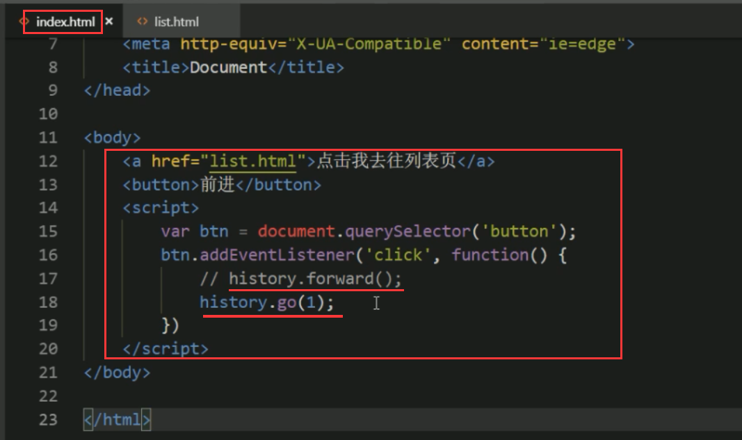 | go(参数) | 前进后退功能参数如果是1前进1个页面如果是-1后退1个页面 |