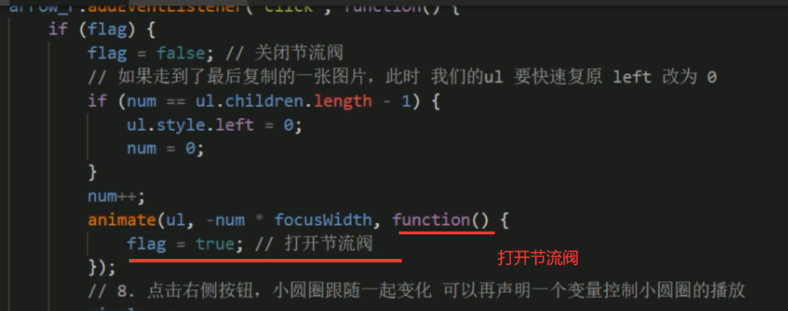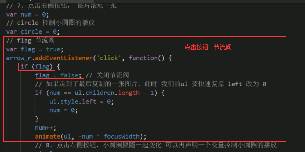 节流阀目的:当上一个函数动画内容执行完毕,再去执行下一个函数动画,让事件无法连续触发。