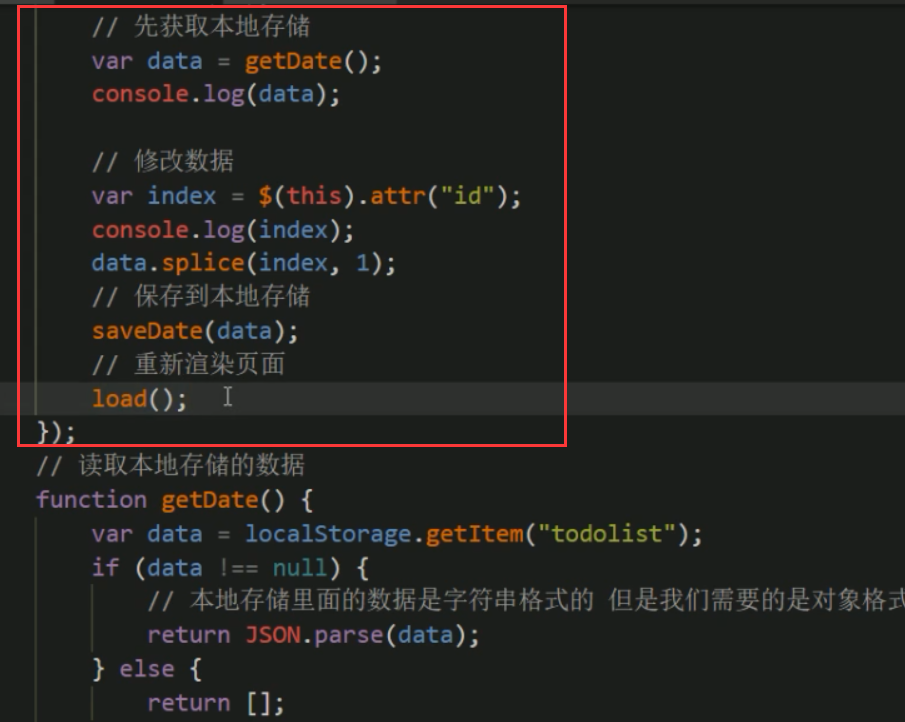 ①切记:页面中的数据,都要从本地存储里面获取,这样刷新页面不会丢失数据,所以先要把数据保存到本地存储里面。