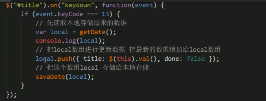 ⑥最后把数组存储给本地存储(声明函数savaDate())